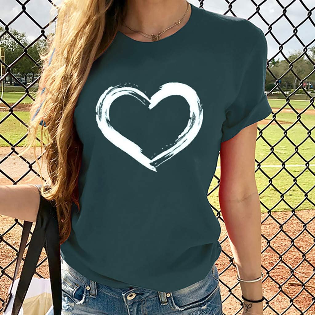 Women Love Heart Graphic Tees Shirt Short Sleeve Tops Tshirts Regular Fit Tunic Blouse Cute Funny Gift Clothes 2023